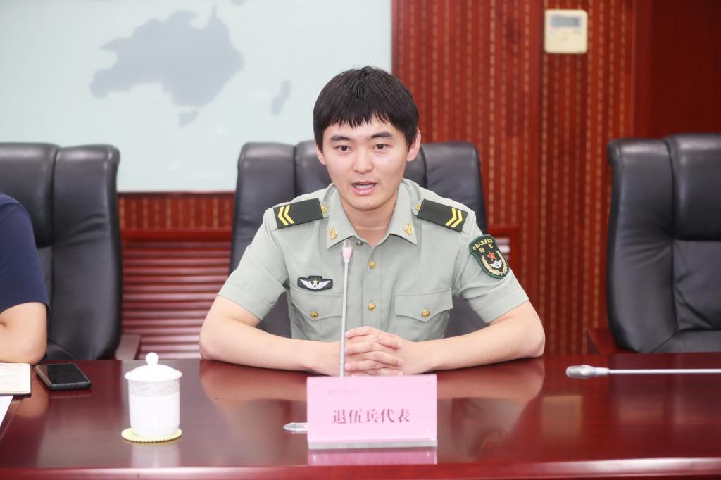 我校退役复学大学生士兵赵湘石作为入伍学生代表分享了自己应征入伍的心路历程,对自己参军入伍过程中学校所给予的帮助表达了衷心的感谢,代表我校退役复学学生群体表达了“退伍不褪色”的决心,将自己在部队所学回馈于学校征兵、国防教育、思想政治教育工作中,为学校事业发展奉献。