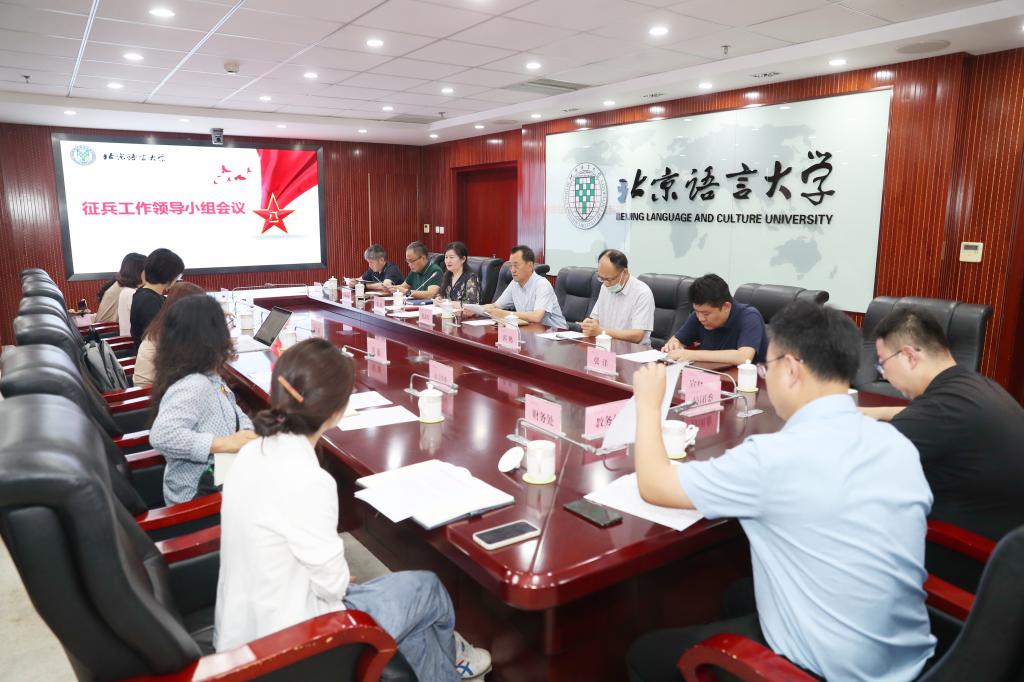6月29日下午,北京语言大学召开2021年征兵工作领导小组工作会议。校党委常委倪海东书记、黄益方副校长出席。校党委宣传部、学工部、校团委、教务处、研究生院、财务处、保卫处、后勤服务集团等小组各成员单位以及各学部院系学生工作负责人、辅导员老师参加,会议由学工部、武装部部长黄展主持。