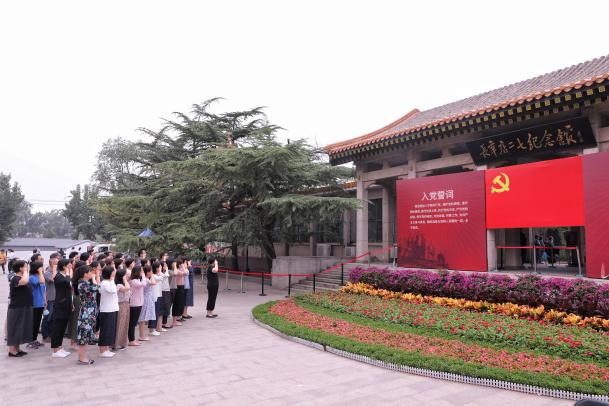 6月29日,中华文化传播中心和汉语速成学院全体党员走进长辛店二七纪念馆,缅怀先烈,重温党史。参观前,在庄严肃穆的氛围中,全体党员面向党旗,在迟兰英同志的带领下庄严宣誓,重温入党誓词,牢记初心使命,坚定理想信念。