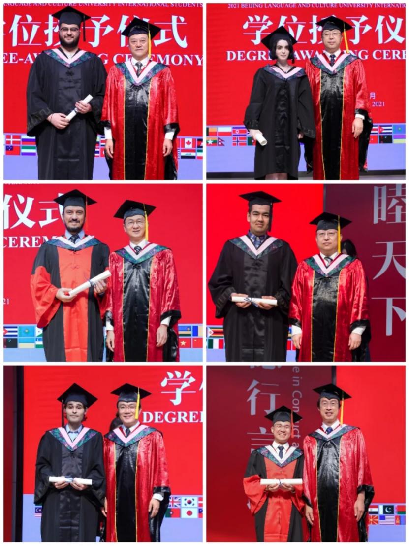在典礼现场的留言墙上,同学们写下了他们想对母校说的话,“在小联合国牵起汉语的手,让全世界知道你是我一生中最大的骄傲。”(巴基斯坦 阿里)“相逢又告别,归帆又离岸,不管未来有多遥远,成长的路上有你有我!我爱北语,我爱中国!”(泰国 彭思梅)“众所周知,北京语言大学具有丰富的教学资源,浓厚的学术氛围,为社会培养出了很多杰出人才,我也很荣幸有机会在北京语言大学就读硕士学位。”(伊朗 新浪)。本届毕业生共有本科生301人、研究生101人,分布在汉语国际教育、语言学及应用语言学、翻译、新闻学等多个专业学位领域。其中汉语国际教育学部233 人、人文社会科学学部36人、外国语学部2人、商学院3人、艺术学院2人、曼谷学院19人以及东京学院6人。其中,有23名同学通过自己的努力,获得了“优秀毕业生”荣誉称号。
