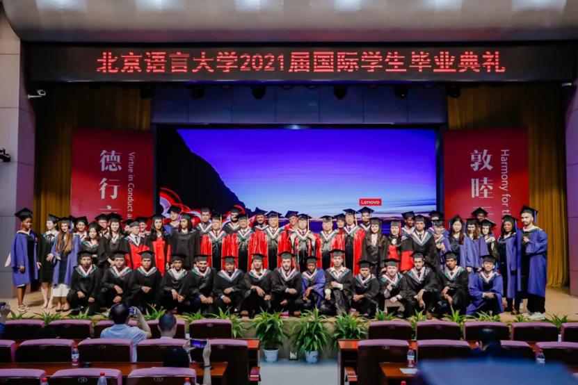 7月5日,北京语言大学2021届国际学生毕业典礼暨学位授予仪式隆重举行,来自全球57个国家和地区的402名同学圆满完成了本科、研究生、博士生学业,踏上人生新征程。在典礼分会场,北京语言大学曼谷学院、北京语言大学东京学院的师生、来自28个国家的北语孔子学院学生1500余人通过线上观礼的方式参与盛典。典礼面向全球直播,由北京语言大学国际教育管理处处长陈丽霞主持,得到了政界、学界的广泛关注,各界人士共聚云端,参与人数近万人。