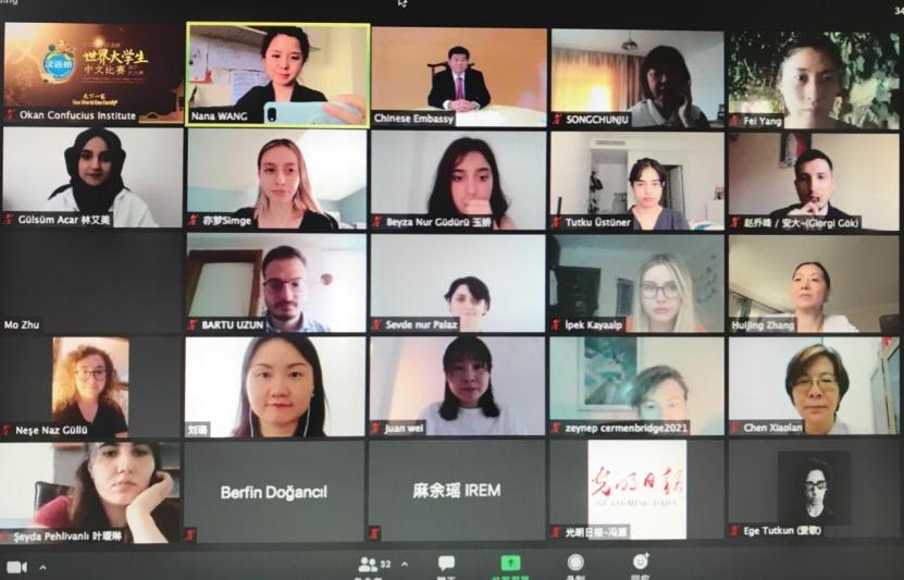 7月7日,第二十届“汉语桥”世界大学生中文比赛土耳其赛区决赛以在线直播的形式举办。来自土耳其各大学中文项目和学习中文的同学踊跃参加了比赛。经过激烈角逐,来自伊斯坦布尔奥坎大学的İpek Kayaalp同学(中文名:梦丝)和埃尔基耶斯大学的Gülsüm ACAR同学(中文名:林艾美)分获一等奖和二等奖。中国驻土耳其大使刘少宾出席开幕式并致辞。中国驻土耳其大使馆文化参赞史瑞琳和伊斯坦布尔奥坎大学副校长古耐尔·古尔索伊出席活动并讲话。同时参加活动的还有土耳其各高校中文专业和中文项目的师生、土耳其学习汉语爱好者、土耳其中土友好人士、土耳其及海外兄弟孔院的师生们。