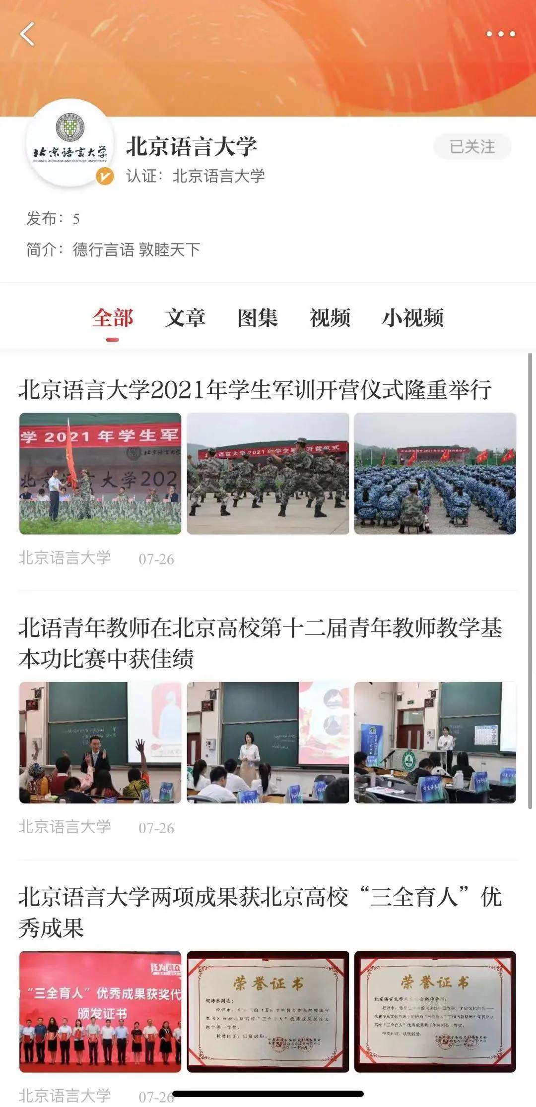 我们将及时更新内容,把北语新鲜事、权威资讯等通过光明号平台推送给更多读者,积极传递好声音,讲好北语故事。大家只要在光明日报客户端上搜索“北京语言大学”,就可以订阅北京语言大学的光明号,及时获取资讯啦!