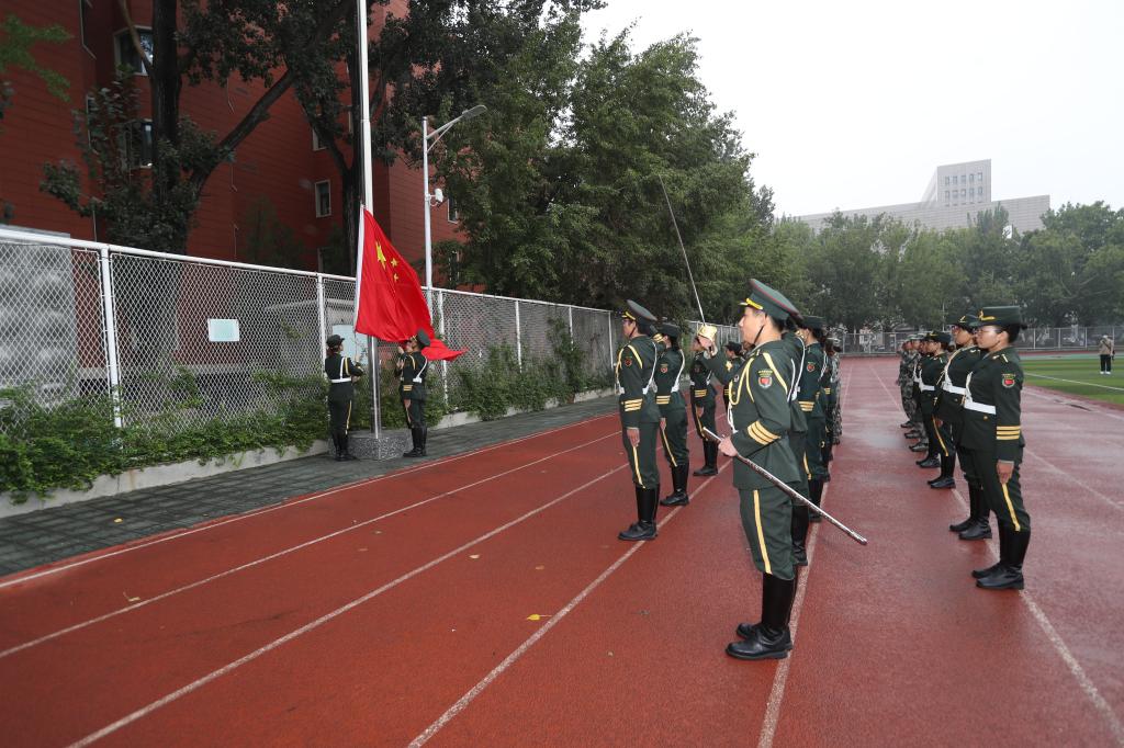 开学典礼在庄严的升国旗仪式中拉开帷幕。全体起立,国旗升起,国歌雄壮,气势恢宏。