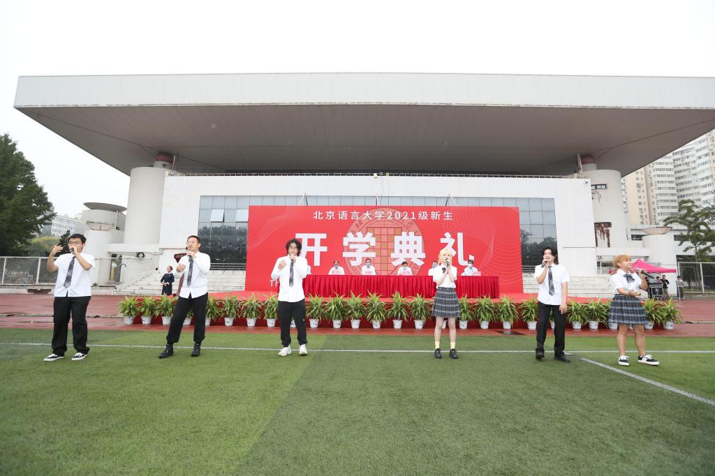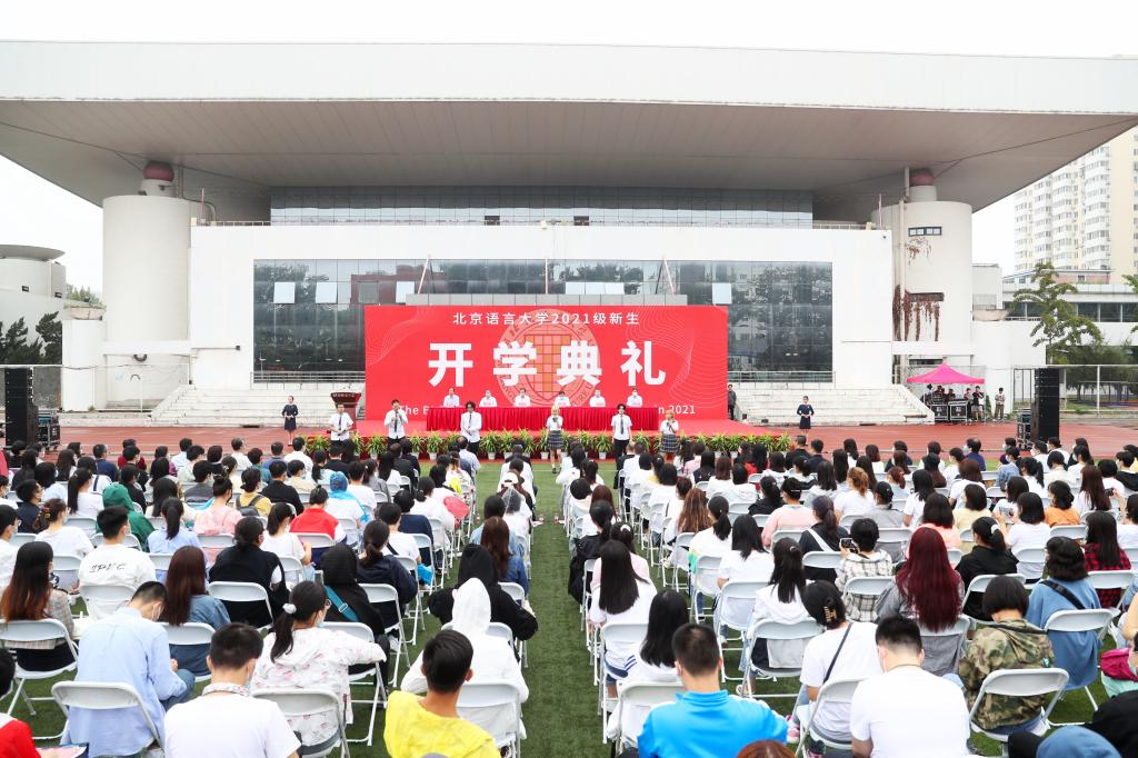 9月14日,北语校园内万国旗随风飘扬,洋溢着喜悦的节日气氛,北京语言大学2021级新生开学典礼在体育场上隆重举行。伴随着北语艺术团合唱队演唱的“少年”的动人旋律和欢快歌声,来自祖国各地和世界各国的2541名中外新生齐聚一堂,为精致美丽的“小联合国”注入新的活力。开学典礼面向全球直播,世界各地的北语人云端相聚,共襄盛举。