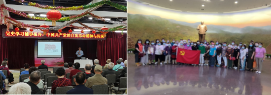 离退休工作处党委通过组织集中学习研讨、召开座谈会、党课以及开展主题党日活动等形式深入开展党史学习教育。组织老同志观看党史学习教育视频《党史故事100讲》;在职党支部与校工会党支部、学生党支部联合开展主题党日活动,交流党史学习心得;通过多种形式开展“我看建党百年新成就”专题调研,召开老同志代表座谈会,倾听老同志心声;邀请我校石定果教授做题为《学习百年党史 传承红色基因:我和我的祖国》 的专题党课,展现老一代知识分子为党奉献的家国情怀,鼓舞新时代青年人不畏困难勇往直前;邀请马克思主义学院杨林坡副教授做题为《中国共产党的自我革命精神与传承》 的专题辅导报告,激励老同志不忘初心,勇于面对问题,敢于不断进行自我革命;各党支部结合支部实际和党员实际开展了“学党史、忆初心”“庆祝建党百年”等主题党日活动。社区党总支组织社区党员、入党积极分子参观香山革命纪念馆,开展红色教育活动。