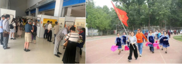 庆祝建党百年,为丰富离退休同志生活,离退休工作处组织形式多样的主题活动。举办退休人员健步走活动,提高离退休同志的健康意识,引导离退休同志开展切合自身身体条件的文体活动;举办离休老干部健身操活动,20余名离休同志参加,精神抖擞,其乐融融;举办“品味端午·传承文明”猜灯谜活动纪念传统节日,增进社区居民交流;第二十八党支部开展“不忘初心,牢记使命”主题党日活动,组织参观香山革命纪念馆;举办“百年铸辉煌·颂歌献给党”庆祝中国共产党成立一百周年文艺汇演,老同志们以丰富多彩的表演形式为大家献上精彩纷呈的艺术盛宴,向党的百年华诞献礼;积极组织老同志创作书法作品,参加校工会联合各部门举办的“翰墨绘盛世 丹青颂祖国”诗词书画作品展,传承中华民族优秀传统文化;组织离退休同志参加“幸福伴侣”艺术照拍摄活动,用光影方式为老同志留下珍贵美好的回忆。
