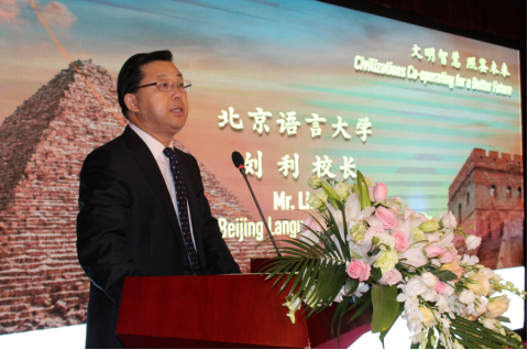 刘利校长首先代表学校对中埃建交65周年纪念日文化交流活动的成功举行表示热烈祝贺!对穆罕默德•巴德里、我校校友乌麦伊麦参赞和使馆的有关工作人员对我校国际交流合作工作的大力支持表示衷心感谢!他在发言中表示,埃及是第一个承认中华人民共和国的阿拉伯和非洲国家,在北京语言大学的第一批留学生中,就有埃及学生。至今,我校已为埃及培养了来华留学生近千人,其中硕士与博士研究生100多人。北京语言大学与埃及苏伊士运河大学共建了孔子学院,与埃及尼罗河电视台合作建设的阿拉伯地区唯一一家以电视节目为主要教学形式的孔子课堂。培养本土的汉语人才,促进两国的民间文化交流,并且帮助5位学生获得了新汉学博士奖学金。