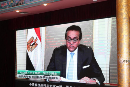 埃及高等教育和科学研究部哈立德·阿卜杜勒·加法尔部长在致辞中说,“中埃两个古老国家的领导人多年来保持着互访,特别是在经济、政治、科技、文化、教育等方面的合作,我们鼓励埃及的教育机构开展和中国教育机构的合作。中国在各个领域的巨大进步很大程度上影响了我们对教育合作的极大兴趣,我们希望最大限度地发挥这一点。”
