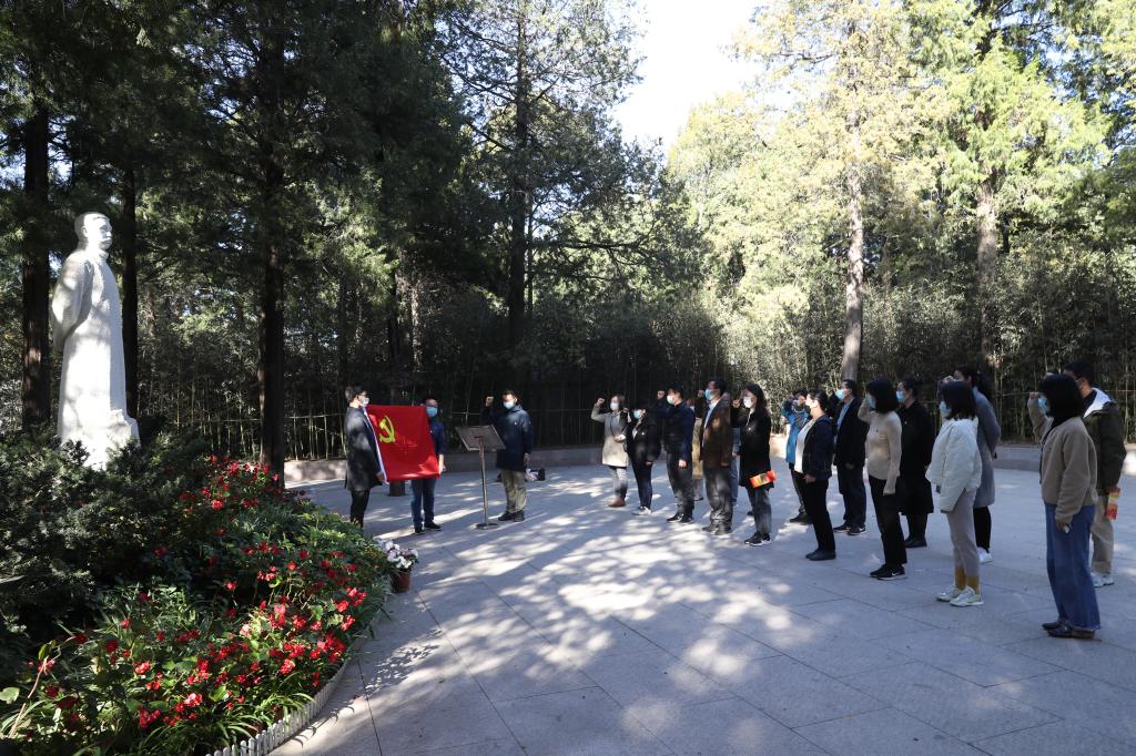 为进一步推进党史学习教育,传承爱国情怀,弘扬革命精神, 10月26日,党委常委、组织部部长聂丹带领学校“双带头人”教师党支部书记、组织员等党务工作者代表赴李大钊烈士陵园和“一二·九”运动纪念亭开展“学党史、强信念、跟党走”实地研学活动。
