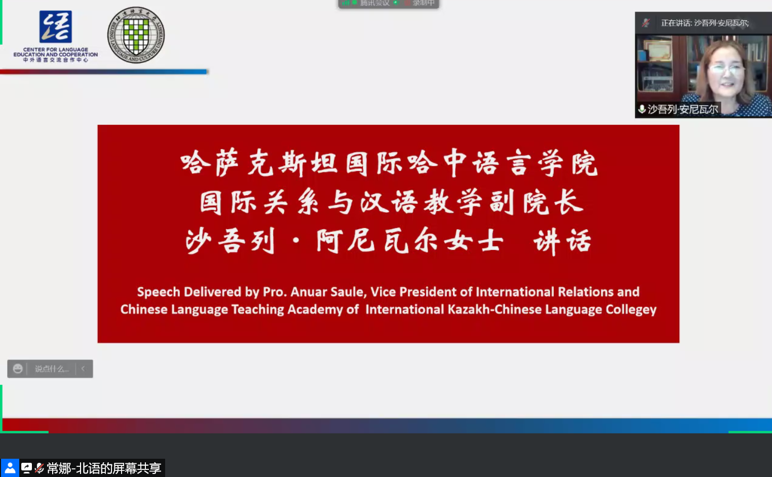 哈萨克斯坦国际哈中语言学院国关与汉语教学副院长沙吾列·阿尼瓦尔女士用“默而识之,学而不厌,诲人不倦,何有于我哉?”这句孔子的名言来高度赞扬北语的任课老师们。老师们渊博的知识、高超的教学水平、严谨的治学态度是所有汉语老师学习的榜样。同时希望营员们把关于中国、关于北京的美好回忆长留心间,继续保持汉语学习的热情,成为中外文化交流的使者。