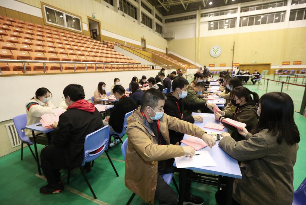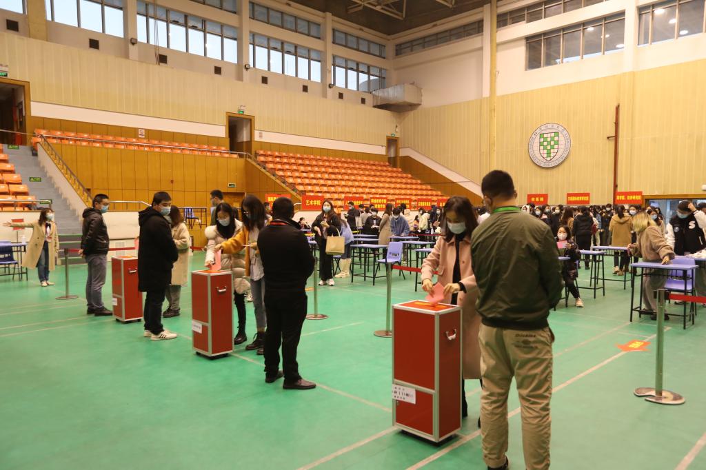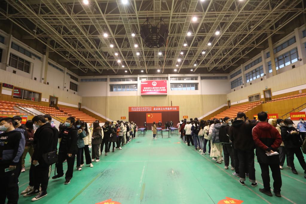 北京语言大学选举主站设在逸夫体育馆内,早上7时整,投票正式开始。选民在工作人员的引导下进入指定区域核验选民证并领取选票。选民在充分了解两位代表候选人的基本情况后,按照选票填写规范认真填写选票,并依次到投票区域投下自己神圣而庄严的一票,投票现场秩序井然。