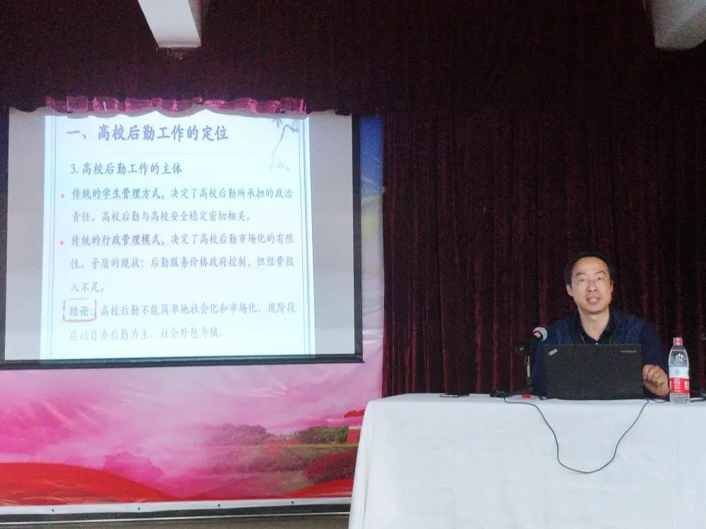 为促进学习成果与后勤发展相融合,后勤党校特邀校党委常委、副校长黄益方为全体后勤党员讲授“以师生为中心,创建一流后勤—高校后勤工作理念与实践”专题党课。他详细讲授了高校后勤工作的定位、理念、目标、文化建设和创建一流后勤五个方面的内容,对后勤未来的发展进一步指明了方向和路径,具有十分重要的指导意义。后勤各支部结合党史学习教育,组织学习研讨、深刻领会本次党课的精神和要求,在实践和工作中认真地贯彻落实,将学习成果体现在实际行动中,努力为创建一流后勤添砖加瓦。