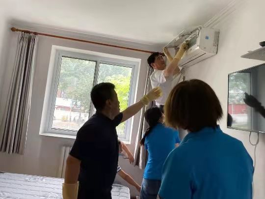 本着为师生办实事的原则,留学生住宿中心党支部成员共同到学18楼和学19楼为宿舍清洗空调滤网和洗衣机,用实际行动为在住学生营造安全卫生、清洁的居住环境。315中心联合物业服务中心党支部举办了“维修接待日,等你来报修”活动,物业师傅现场待命,主动上门为学生提供维修服务。