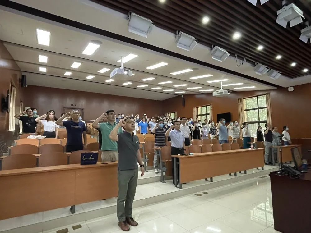在中国共产党百年华诞之际,后勤服务集团党总支组织全体党员、干部收看庆祝中国共产党成立100周年大会直播。后勤全体党员怀揣着无比激动的心情,面向鲜红的党旗,高举右手重温了入党誓词。全体党员在入党誓词中守初心担使命,牢记自己对党的庄严承诺和坚定信仰,永葆共产党人的政治本色,激励全体党员不忘初心、牢记使命,用心工作、务实重干,开拓创新、勇往直前。