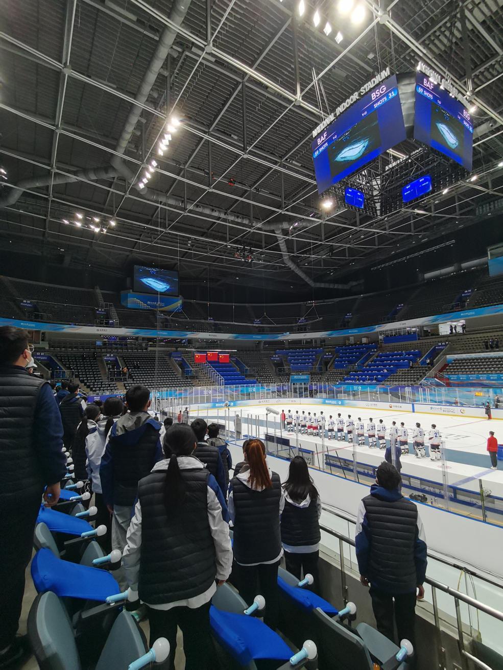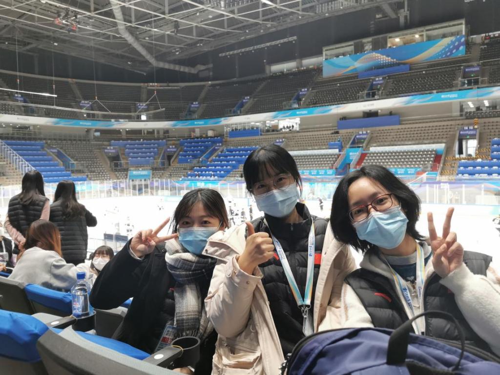 11月10日至11月13日,北语志愿者在服务冰球测试赛,保障比赛场馆工作有序进行的同时,在现场观看了激烈的冰球比赛。在观看比赛中,北语志愿者了解了许多冰球的比赛规则,学习了冰球比赛的中英文专业术语,为日后更好地服务于北京冬奥会提供保障。