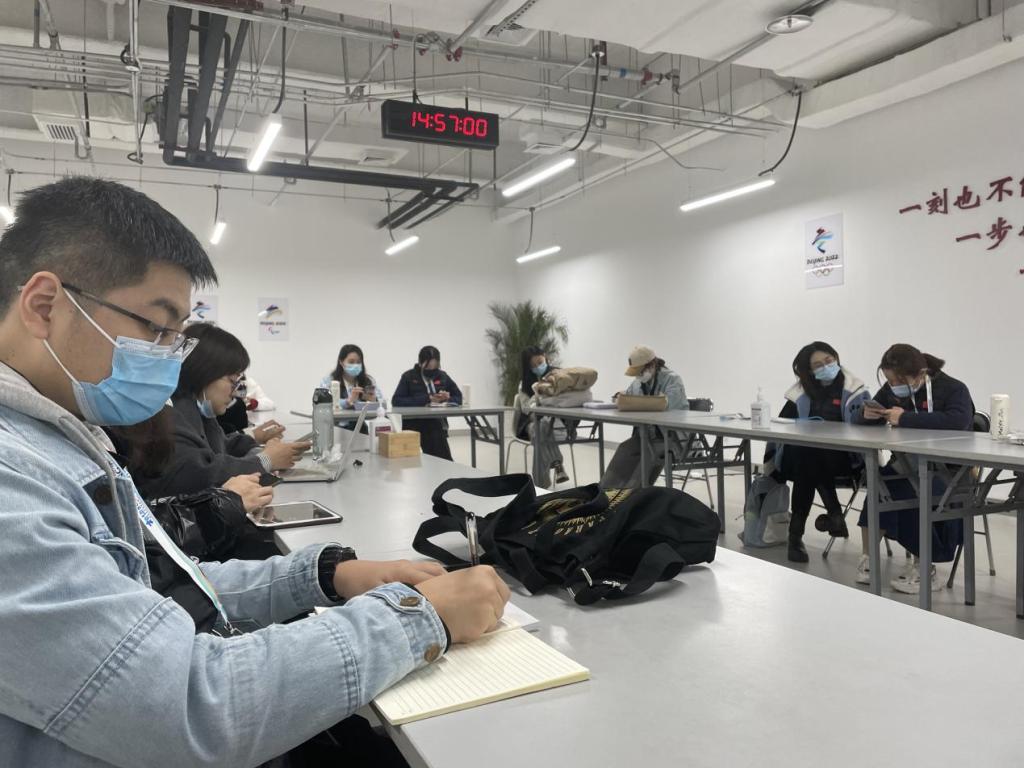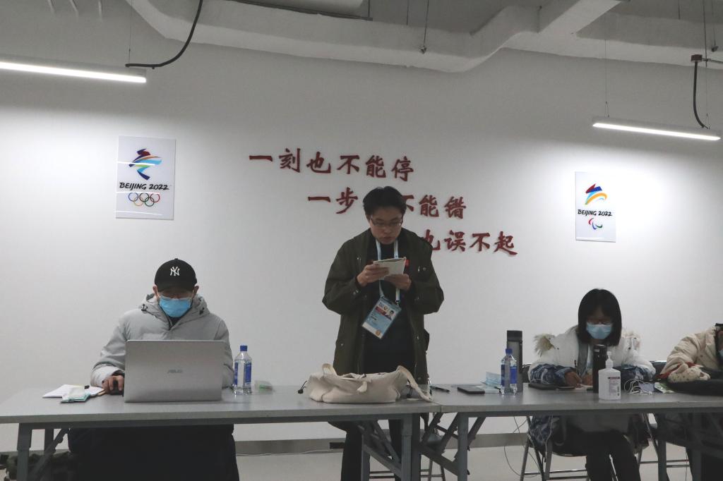 11月9日,我校志愿者分别进入各自所在的领域岗位,进行了岗位培训和工作对接,迅速投身此次“相约北京”系列冬季体育冰球测试活动志愿服务。在国家体育馆语言服务经理周老师和郑老师的带领下,我校语言服务领域的志愿者进行了场馆语言服务基础知识的培训及交替传译能力培训。我校礼宾领域的志愿者对工作性质、工作内容、工作流线进行了系统性了解,并了解到礼宾是以协调保障为宗旨的综合性岗位。志愿者们还对礼宾的6大工作内容进行了学习,分别是:大家庭区域权限控制、休息室看台管理、颁奖嘉宾确认、旗帜监督、提供国歌、协调相关业务领域等。除此之外,志愿者们还进行了实地踏勘,完成了部分流线确认。