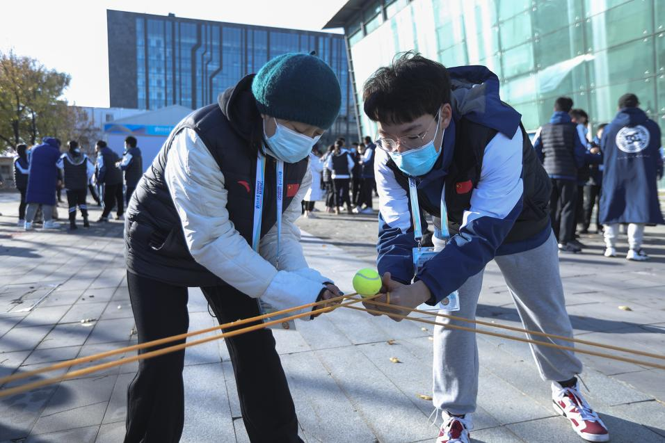 11月8日,志愿者们在国家体育馆南广场进行素质拓展和团队融合建设。上午,志愿者们在教练的带领下学习了《我是中国人》手语操表演。之后,北语35名志愿者同其他400余名志愿者混合组成了二十支队伍,进行小组趣味竞赛和破冰活动。此次素质拓展活动促进了志愿者们相互了解,树立了集体与合作意识,增强了团队凝聚力,为志愿者走进各业务领域,提供高质量志愿服务打下坚实基础。