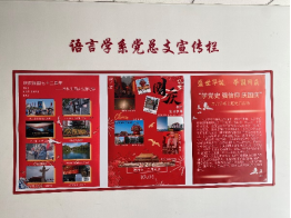 为使广大师生积极参加党史学习教育,语言学系开设了党史宣传专栏,通过展板、海报等多种形式进行宣传;同时在“北京语言大学语言学系”公众号、“北语语言学系团学”公众号、校园网站等平台设置专题报道,做好党史学习教育的宣传。