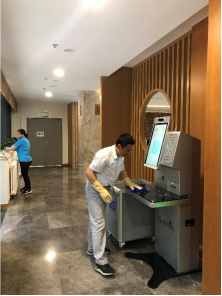 2、党员义务劳动。2021年上学期,图书馆的公共区域面积扩大数倍,而保洁人员一时不能完全配备齐全,因此本焕然一新的图书馆面临着环境脏乱差的严峻问题。虽然图书馆已经将保洁工作纳入到招标任务计划之中,但是走完全部流程,直至保洁团队正式接手还需要一段时间。环境问题不容等待,为更好的将党史教育与办实事结合起来,支部倡议全体党员挺身而出,提出开展“我为读者办实事、改善环境担责任”的义务劳动。全馆分为5个责任区,每楼层为一个责任区,每2名党员负责一个楼层(办公区除外),要求每天有巡视和清洁工作,保持责任区内地面、窗台、沙发等的卫生整洁。本次义务劳动是党史教育的成果检验,是共产党员勇于担当、乐于奉献的精神体现。党员们积极响应号召,克服困难,顺利完成了任务,直至8月份专业保洁团队正式入驻。