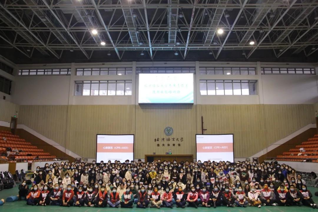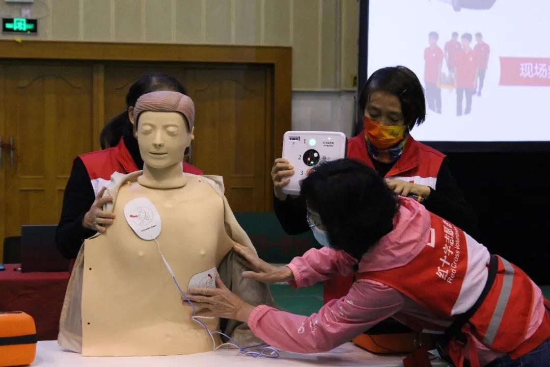 北京市红十字会的老师们带来应急救护课程培训。志愿者跟随北京市应急能力建设促进中心的老师们进行了心肺复苏和AED使用理论与实操。志愿者分成小组,在设定的急救场景中完成演练与培训考试。