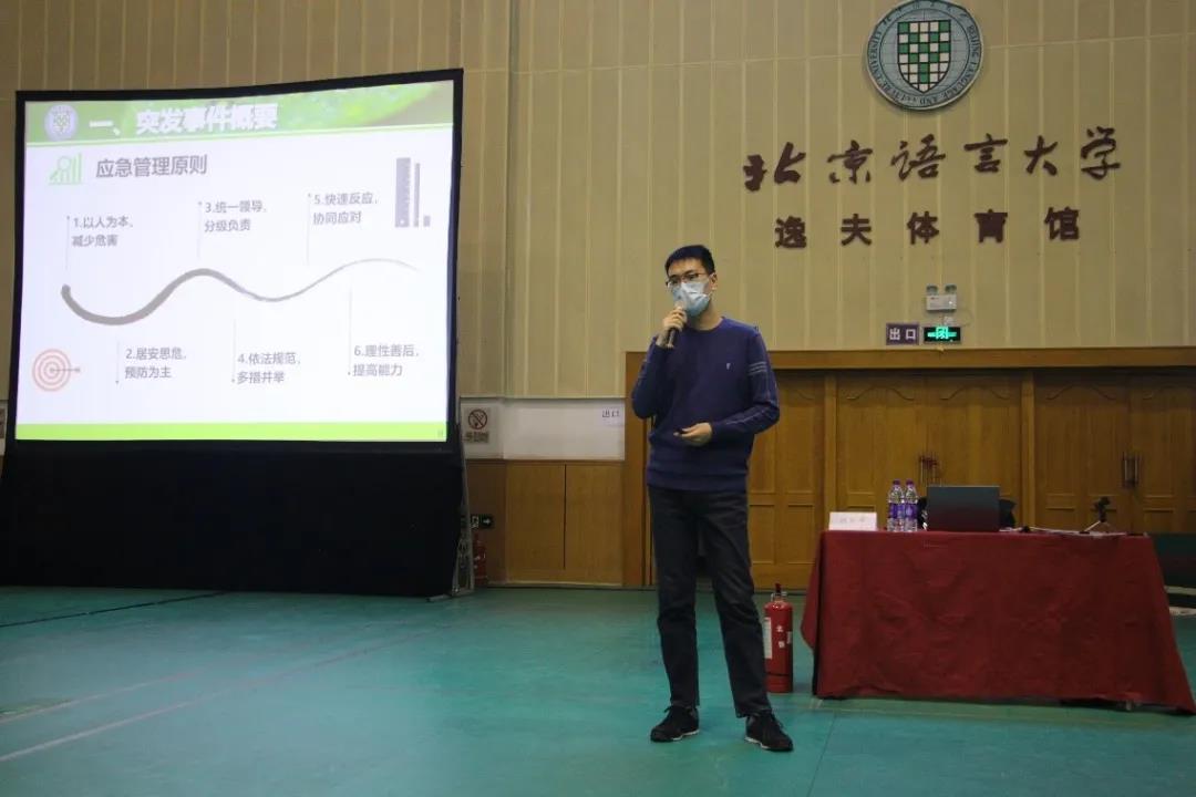 大型活动突发事件应对课程由保卫处的刘自华老师讲授。刘老师首先明确了突发事件的基本概念,给出了应急管理基本原则,详尽地向大家介绍了可能出现的突发情况。并提示同学们应在确保自身安全的情况下,协助工作人员应对突发情况。