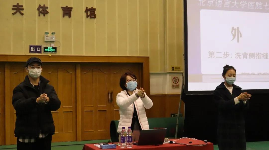 校医院副院长王彤老师为同学们带来了防疫知识相关两项课程培训。她向同学们强调了疫情防控的重要性,并结合《北京2022年冬奥会和冬残奥会防疫手册》,为志愿者系统地介绍了场馆疫情防控与运行通行注意事项及疫情防控的通用知识,并教授了同学们正确的洗手与佩戴口罩的方法。