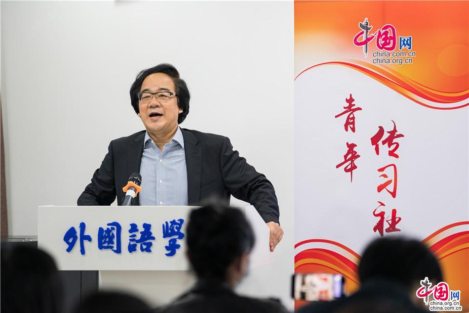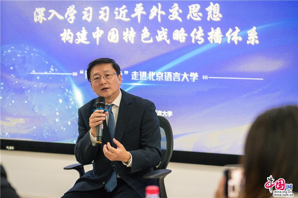 10月29日,“学习习近平外交思想,构建中国特色战略传播体系——‘青年传习社’走进北京语言大学”主题活动在北京语言大学举行。图为中国网总编辑、习近平外交思想和新时代中国外交专题网站总编辑王晓辉发表主题宣讲。中国网记者 王月博 摄