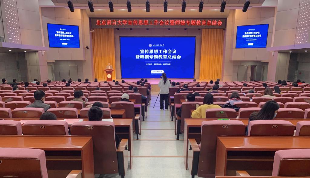 11月26日下午,北京语言大学宣传思想工作会议暨师德专题教育总结会在教一楼209召开。倪海东书记作学校宣传思想工作会议报告,刘利校长作学校师德专题教育总结报告。会议总结并部署了学校宣传思想工作和师德师风建设工作,表彰了“三全育人”先进单位,为学校开局“十四五”、迎接60周年校庆、开启新征程,提供了坚强思想保证。党委副书记魏晖主持会议。