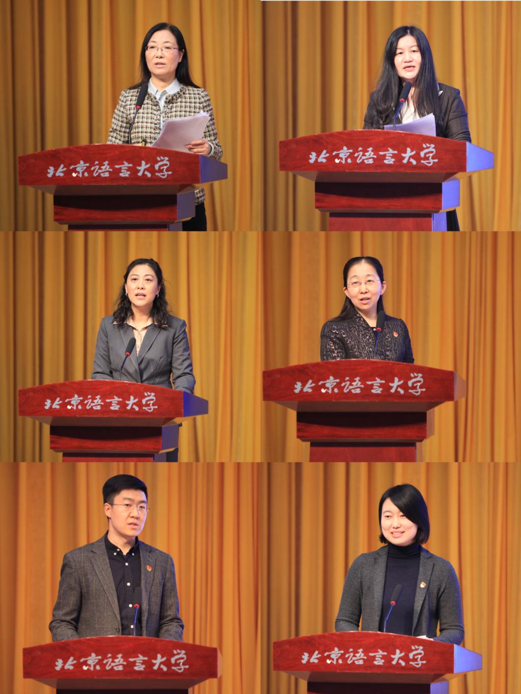 会上,马克思主义学院院长丁文阁、学工部部长黄展、外国语学部党委书记梁清分别围绕思政课教学与马克思主义学院建设、大学生思想政治教育、“三全育人”经验作了交流发言。人文社会科学学部主任程娟、信息科学学院党总支书记李超、汉语国际教育学部速成学院教工党支部书记李燕分别围绕“黄大年”式教师团队建设、二级党组织抓教师思政与师德师风建设、发挥教师党支部在涵养师德中的作用进行了交流发言。