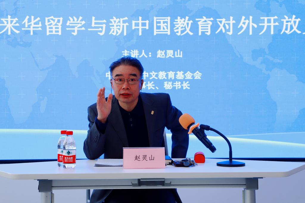 赵灵山理事长曾任教育部国际合作与交流司来华留学工作处处长、教育部港澳台事务办公室常务副主任、中国教育国际交流协会秘书处秘书长。本次讲座,他回顾了新中国成立后教育对外开放的发展历史,并将其分为八个阶段,对每个阶段来华留学的历史发展和取得的成就进行了梳理总结。同时,他也结合自身工作经历,畅谈了长期从事来华留学工作的心得体会和对新时代我国教育对外开放前景的展望。