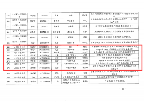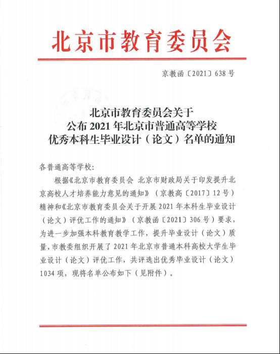 日前,北京市教育委员会公布2021年北京市普通高等学校优秀本科生毕业设计(论文)名单,我校王淑婷等8名同学的毕业论文入围该名单。