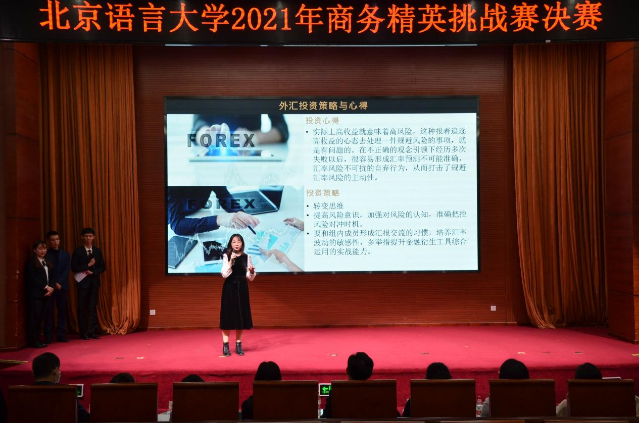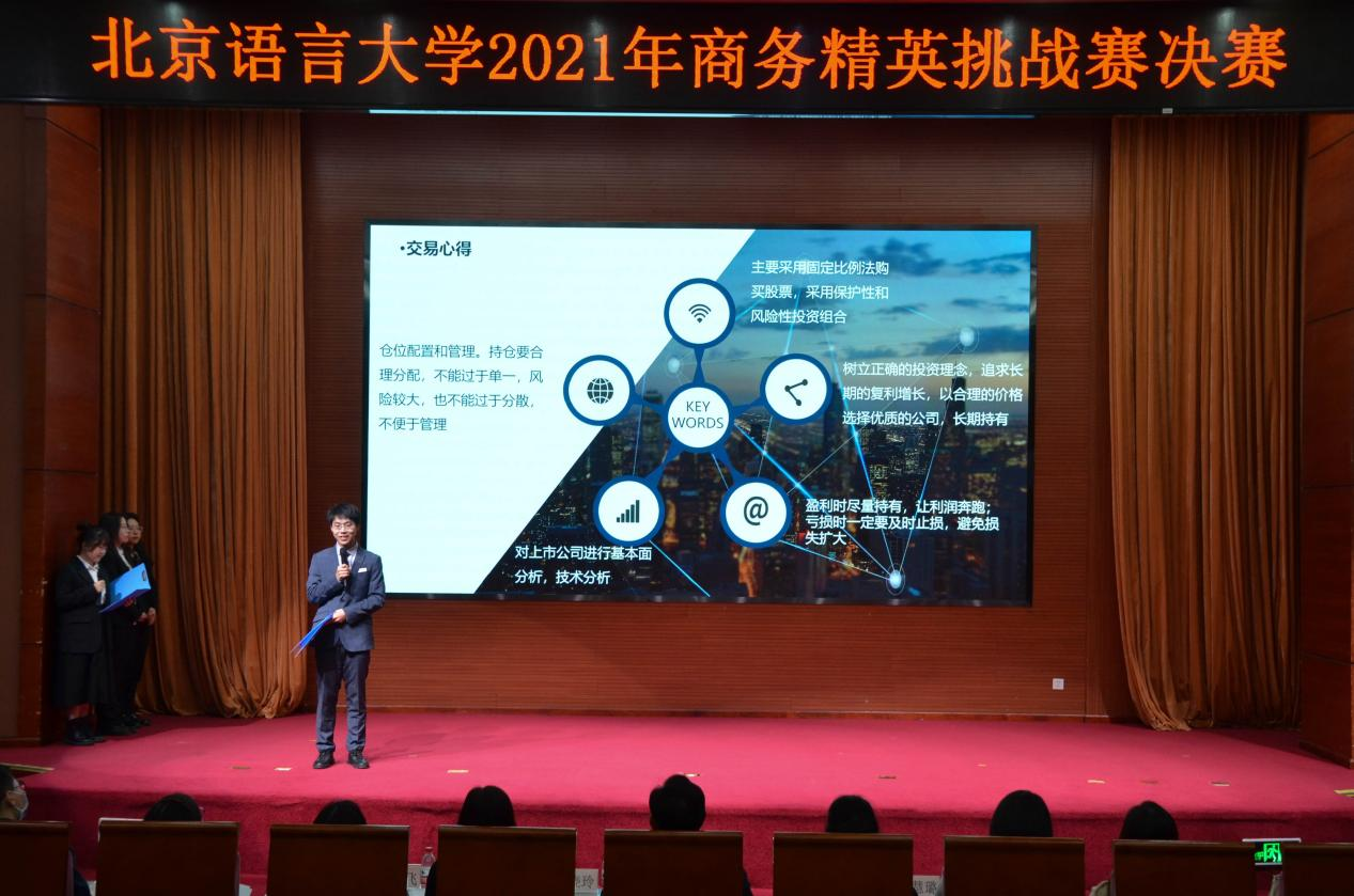 北京语言大学商务精英挑战赛不仅给同学们提供了一个展示风采的平台,更为同学们创造了将理论知识付诸实践,进一步提升自我的宝贵机会。本次比赛采用了证券模拟交易的新形式,与往届商务精英挑战赛相比更具创新性与实践性。大赛充分调动了同学们学习的积极性,也提高了同学们的综合能力。同学们将在未来能够更加深入地了解当今商务领域新变化,创新地适应变化、顺应时代发展趋势,把握新时代的新机遇,在商务领域成就一番事业。
