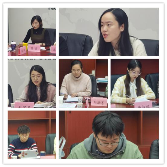学部辅导员曹鑫、高睿璇、毛星月、阳融寒、刘文韬、殷丛丛、唐诗琪分别从研究生学生会管理、就业和党建、班团建设、学风建设、深度辅导和心理健康教育、出国交流等方面进行了交流发言。