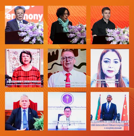 格鲁吉亚、孟加拉国、乌拉圭、委内瑞拉、萨尔瓦多、佛得角等国驻华使节,教育部国际司、中外语言交流合作中心、留学基金委、留学服务中心、中外人文交流中心、中国教育国际交流协会、中国国际中文教育基金会、世界汉语教学学会相关机构负责人,20所中国高校、中资企业代表与现场高校师生和全球100多个国家的线上观众共同参加了启动仪式。此外,上合组织秘书长诺罗夫、塔吉克斯坦教育和科学部部长伊马莫左达、美国犹他州参议院主席亚当斯、美国华美协进社社长贺志明、法国波城市市长贝鲁、英国伦敦大学学院教育学院院长李嵬,以及俄罗斯、喀麦隆、阿富汗等国师生代表纷纷发来祝贺视频,预祝2021国际中文教育交流周成功举办。