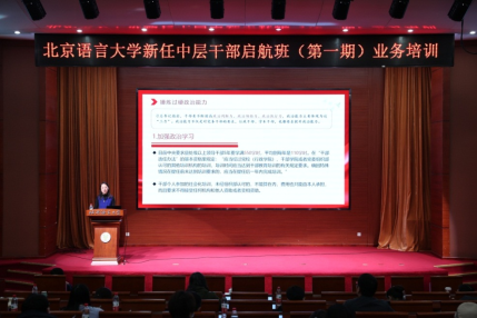为全面提升学校中层干部政治素养和理论水平,切实增强干部职业精神和业务能力,12月10日,北京语言大学新任中层干部启航班(第一期)邀请党委组织部、学校办公室、党委宣传部、纪委办公室和审计处等5个职能部门负责人为80余名新任干部开展业务培训,集中讲授干部相关政策和工作实务。培训会由党委常委、组织部部长聂丹主持。