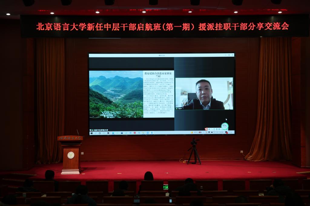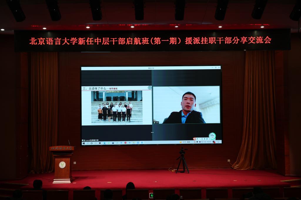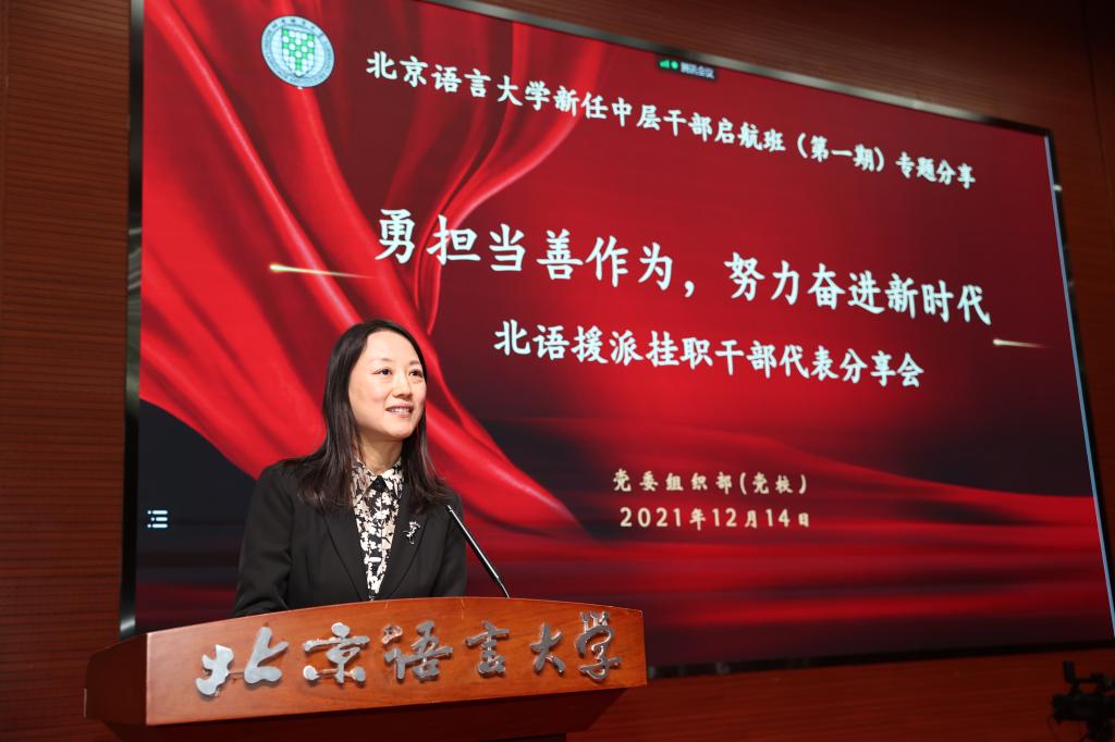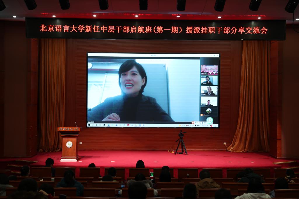12月14日下午,北京语言大学新任中层干部启航班(第一期)“勇担当善作为,努力奋进新时代”援派挂职干部分享会在逸夫报告厅成功举办,5位援派挂职干部代表与80余名新任干部分享了他们援派挂职工作期间的工作经历和心得体会。会议由学校党委常委、组织部部长聂丹主持。