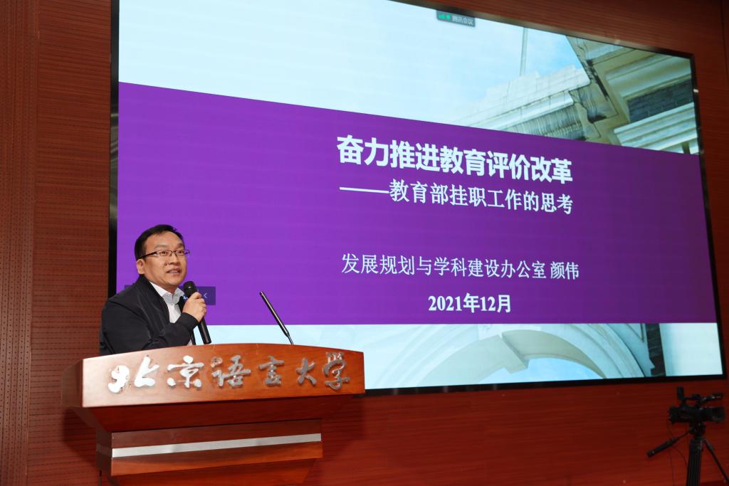 发展规划与学科建设办公室主任颜伟,2019年3月挂职教育部综合改革司体制改革处副处长一年。他以“奋力推进教育评价改革”为题分享了参与重要文件《深化新时代教育评价改革总体方案》研制起草及审议发布的工作经历,联系实际工作与大家共同探讨了如何更好理解和落实好教育评价改革。他表示,挂职是一次十分难得的人生机会,不仅开阔了视野、增长了才干、锤炼了作风,更增强了推动学校事业发展的责任感、使命感和危机感。在挂职岗位锻炼中,干部要主动靠上学、跟上学、贴上学,学会用平台思维研究谋划工作,着力提升自我素质,严格个人纪律要求,讲好“北语故事”,树好北语干部形象。