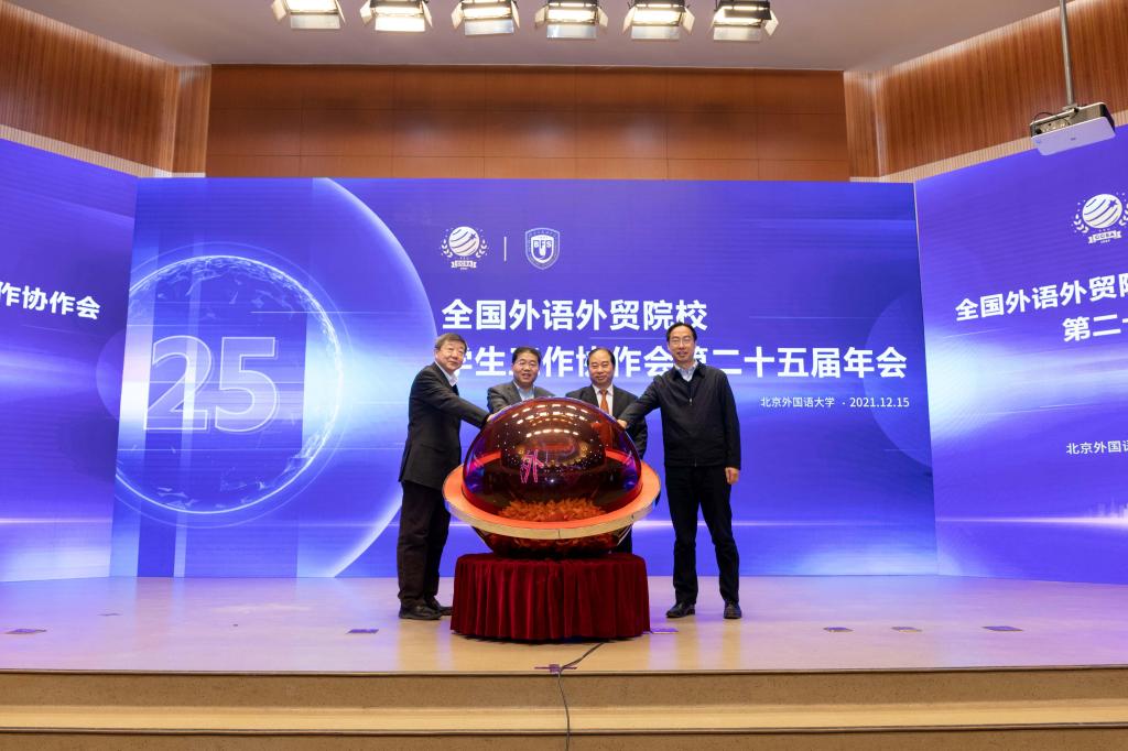 12月15日,全国外语外贸院校学生工作协作会第25届年会在北京外国语大学召开。来自全国14所外语外贸类院校近百余名参会代表采用线上线下相结合的形式参与本届年会研讨。我校由校党委常委黄益方副校长带队,党委学工部部长黄展、学工部副部长张洋,学生处副处长、招生办公室主任王悦,学生处副处长、就业创业指导中心主任刘喆,校团委书记杨天乔,商学院党总支副书记张坤以及辅导员玄铮一行8人参加了年会。