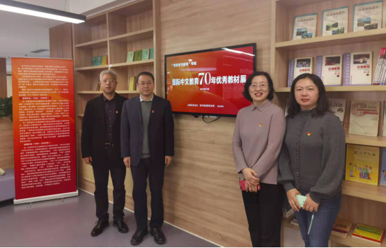 为扎实推进党史学习教育,深入挖掘北京语言大学红色基因,出版社党总支与图书馆直属党支部共同策划、举办了“国际中文教育70年优秀教材展”。12月21日上午,出版社党总支书记郝运、副书记陈万超,图书馆直属党支部书记邓亚文、副馆长陆晓曦共同出席了展览开幕仪式。