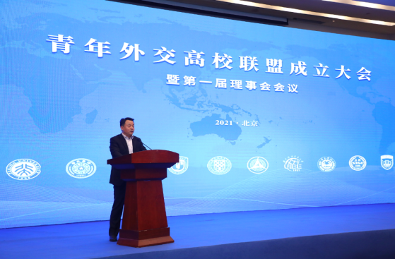 该联盟由共青团中央倡导成立,是相关高等院校自愿建立的工作机制,在决策机制上采用理事会负责制,在运行机制上采用高校轮值制。联盟旨在深入贯彻落实习近平外交思想和习总书记对中外青年交流的重要指示精神,促进中国青年参与国际交往和国际传播,培养具有全球胜任力的青年人才,打造青年外交的智库、人才库和资源平台。联盟创始成员包括10所高校,分别为北京大学、清华大学、中国人民大学、北京外国语大学、北京语言大学、中国传媒大学、对外经贸大学、外交学院、上海外国语大学和西安外国语大学。团委书记杨天乔、国际关系学院院长贾烈英教授当选为联盟第一届理事会理事;新闻传播学院云国强院长、国际关系学院马方方副院长当选为联盟导师团成员;新闻传播学院潘佼佼和国际关系学院胡王云老师当选为联盟专家团成员;团委奚琢、国际关系学院张豫洁老师当选联盟秘书处成员。