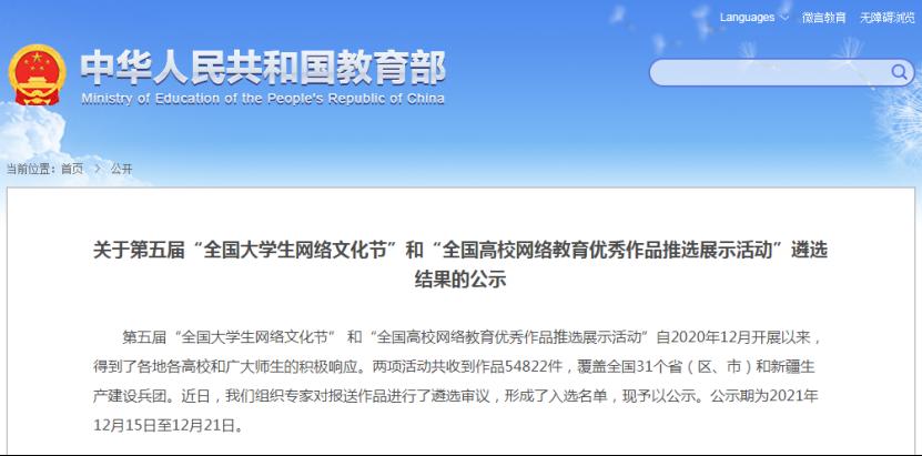 第五届全国大学生网络文化节活动由教育部思想政治工作司、中央网信办网络社会工作局主办,面向全体在校大学生的网络文化主题教育活动,内容丰富,形式新颖,涵盖微电影、动漫、摄影等各种作品。我校对本次活动高度重视,及时通知,精心组织,指导教师认真负责,鼓励引导广大北语学子积极参与正能量网络文化作品创作,取得了优异的成绩。希望全体北语学子以获奖同学为榜样,努力学习,积极实践,全面提升网络素养,唱响时代主旋律,与北语同进步,与祖国同发展。