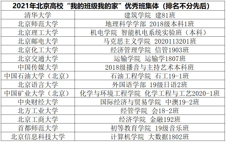 2021年北京高校“我的班级我的家”十佳班集体创建活动由北京高校学生工作学会主办,旨在推动北京高校学生班集体建设,展示团结和谐、友爱互助的班级文化,充分发挥班级在服务大学生全面发展中的积极作用。希望全体北语学子以19级日语2班的同学们为榜样,凝心聚力,团结友爱,共同成长,积极参与班集体建设,营造良好班风,共创和谐氛围,为四年的大学生活收获一份难忘的友情。