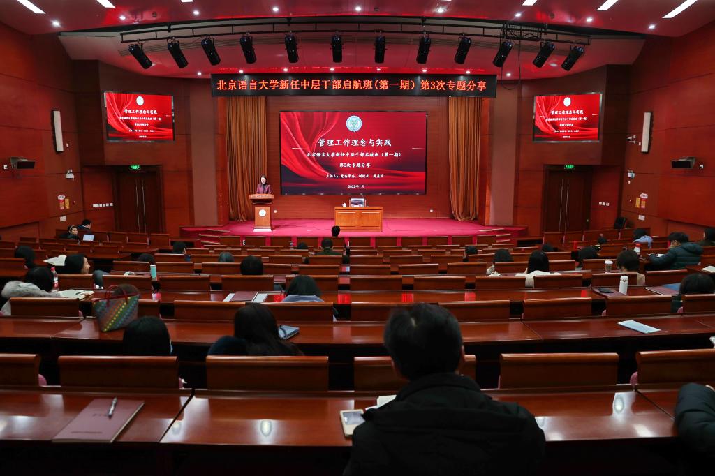 聂丹部长在总结中指出,“没有一流的管理和服务,就没有一流的大学”。一流的管理和服务关键是要有一流的管理干部,中层干部是学校发展的中坚力量,学校能走多远、走多好,主要是看中层干部的步伐有多坚定、多有力。进入新时代,学校发展面临许多新形势、新任务,干部也随之面临许多新要求、新挑战,当前干部队伍整体上的管理能力以及专业化、职业化水平还不能适应新时代学校事业高质量发展的需要。这也是学校举办中层干部“启航班”“领航班”“引航班”“远航班”的初衷。希望通过黄校长的分享,新任中层干部能够立足岗位,深入思考管理工作理念和方法,不断提高管理水平,为学校的人才培养、教学科研提供一流的管理和服务,为建设一流语言大学做出应有的贡献。