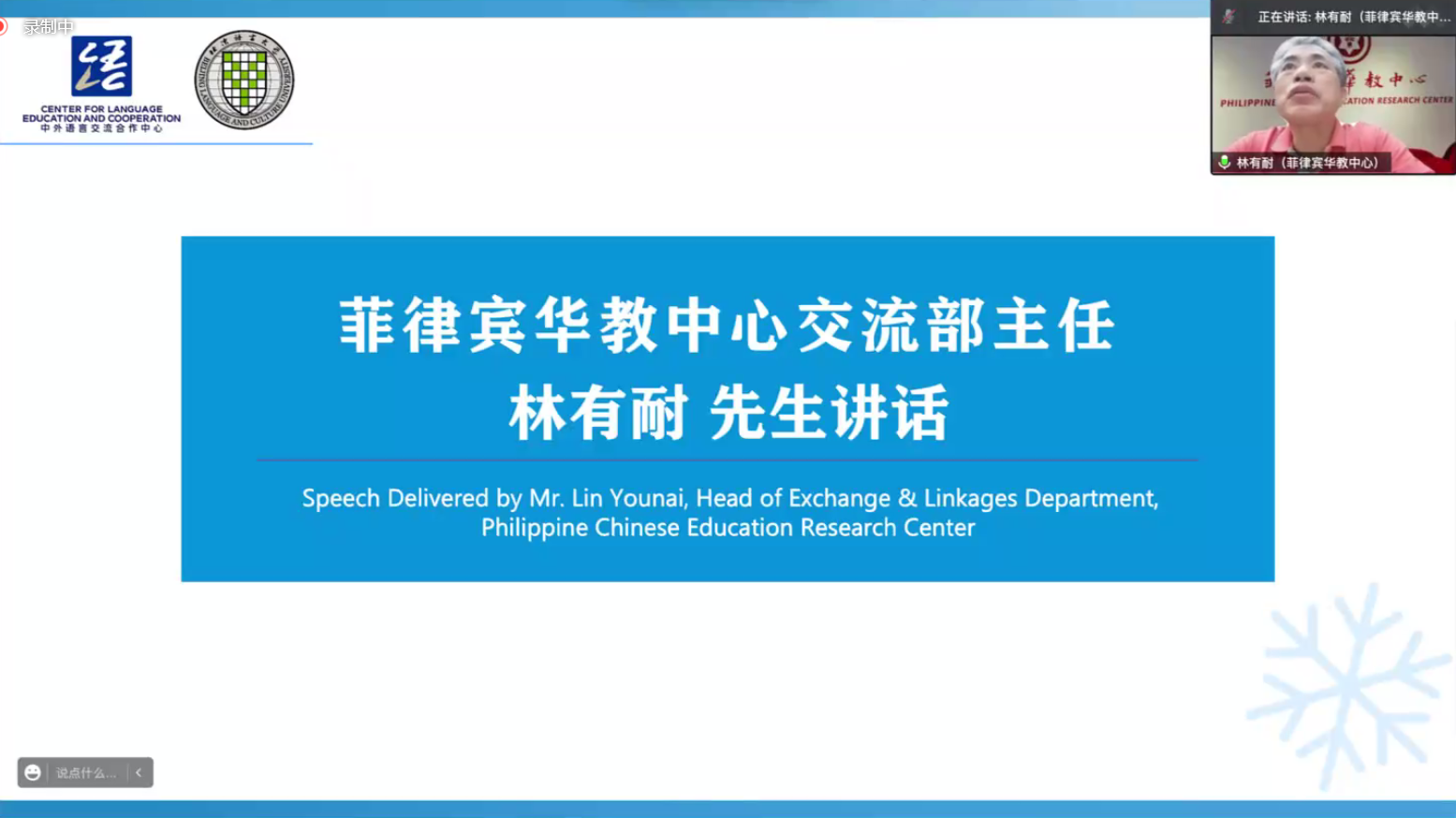 菲律宾华教中心交流部主任林有耐先生感谢主办和承办单位的领导和老师们精心策划和组织、准备了这场内容丰富、形式多样的文化大餐,让营员们从中获得了许多冬奥会相关信息和资料,也学到许多在课堂上没能学到的知识。他认为本次冬令营在课程的设置和安排上真正突出了“精彩冬奥,健康中国”这一主题,营员们大开眼界、受益良多、收获满满。