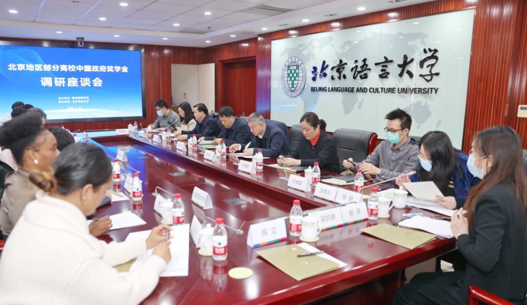 3月24号上午,由教育部财务司、财政部科教和文化司、国家留学基金管理委员会、教育部经费监管事务中心等部门联合举办的北京地区部分高校中国政府奖学金调研座谈会在北京语言大学举行。教育部财务司司长郭鹏、财政部科教和文化司副司长吕建平、国家留学基金管理委员会秘书处副秘书长田露露、北京语言大学校长刘利以及相关单位领导出席会议。北京语言大学、北京大学和中国石油大学(北京)等高校的来华留学工作负责人、财务工作负责人和师生代表30多人参加座谈。会议由教育部财务司外事财务处处长陈舒主持。