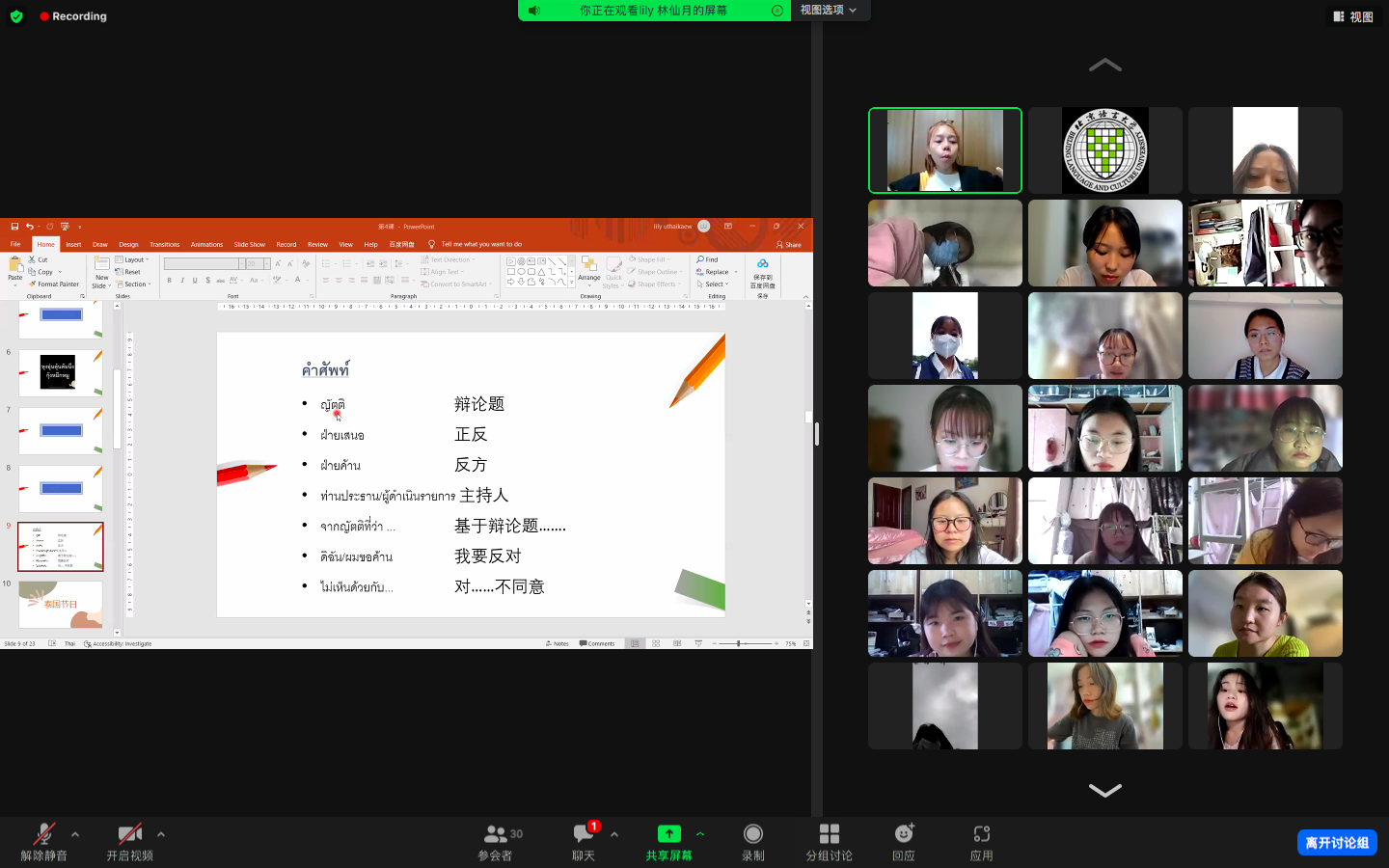 自2014年至今,北语已连续承办九年赴泰国志愿者培训项目。受疫情影响,本次培训仍为线上教学,采用“直播+录播+自主学习”的形式,利用以往线上培训经验以及在线教学资源,开设了“名师讲堂”“模拟课堂”“实用外语” “中国才艺”“研修分享”“集体活动”及“自主学习”七大模块课程。本次培训不仅邀请到了北语科研和教学一线的学者、教师进行集中授课,还邀请了北京师范大学、中国传媒大学、南开大学、北京外国语大学、北京林业大学相关领域的专家以及泰国本土教师开设了各类讲座,均获得了志愿者们的一致好评。