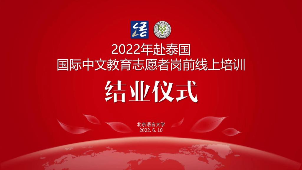 6月10日,由中外语言交流合作中心主办、北京语言大学国际中文教育实践与研究基地承办的2022年赴泰国国际中文教育志愿者岗前线上培训圆满结束。来自全国101所院校的347名学员经过为期37天的系统培训顺利结业,即将走上新的征程。北京语言大学副校长张宝钧、中外语言交流合作中心志愿者工作处处长周卉等领导和北京语言大学一带一路研究院副院长黄悦、北京语言大学汉语学院教师常丹阳等授课专家代表出席仪式,北京语言大学国际中文教育实践与研究基地副主任戴媛媛主持。