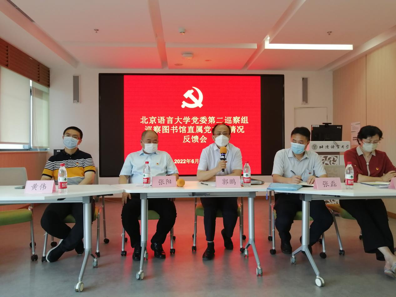 根据学校党委巡察工作统一部署,6月15日下午,北京语言大学党委第二巡察组情况反馈会分别在教育技术与资源管理中心、图书馆召开。校党委副书记魏晖,校长助理、研究生院院长郭鹏参加反馈会并讲话。巡察组组长张阳代表学校党委向两个被巡察党组织反馈巡察意见。被巡察单位党组织书记汤京淑、邓亚文分别作表态发言。