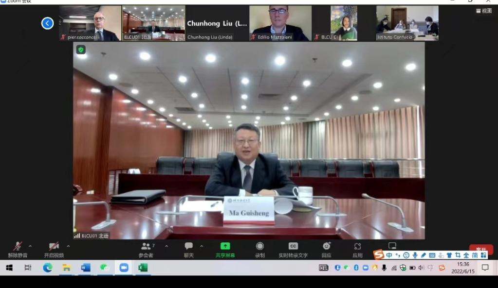 6月15日下午,意大利米兰天主教圣心大学孔子学院2022年理事会以视频会议的方式顺利召开。北京语言大学党委副书记马贵生、国际教育管理处/孔子学院工作处处长陈丽霞、孔子学院中方院长梁清,意大利米兰天主教圣心大学副校长高科切利(Pier Sandro Cocconcelli)、国际事务和国际教育中心主任艾迪(Edilio Mazzoleni)、语言科学和外国语言文学学院院长高博(Giovanni Gobber)及孔子学院外方院长竺易安教授(Elisa Maria Giunipero)等相关负责同志参加会议。